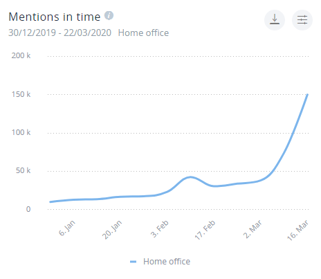 Worldwide mentions of the terms “home office” and “remote work”