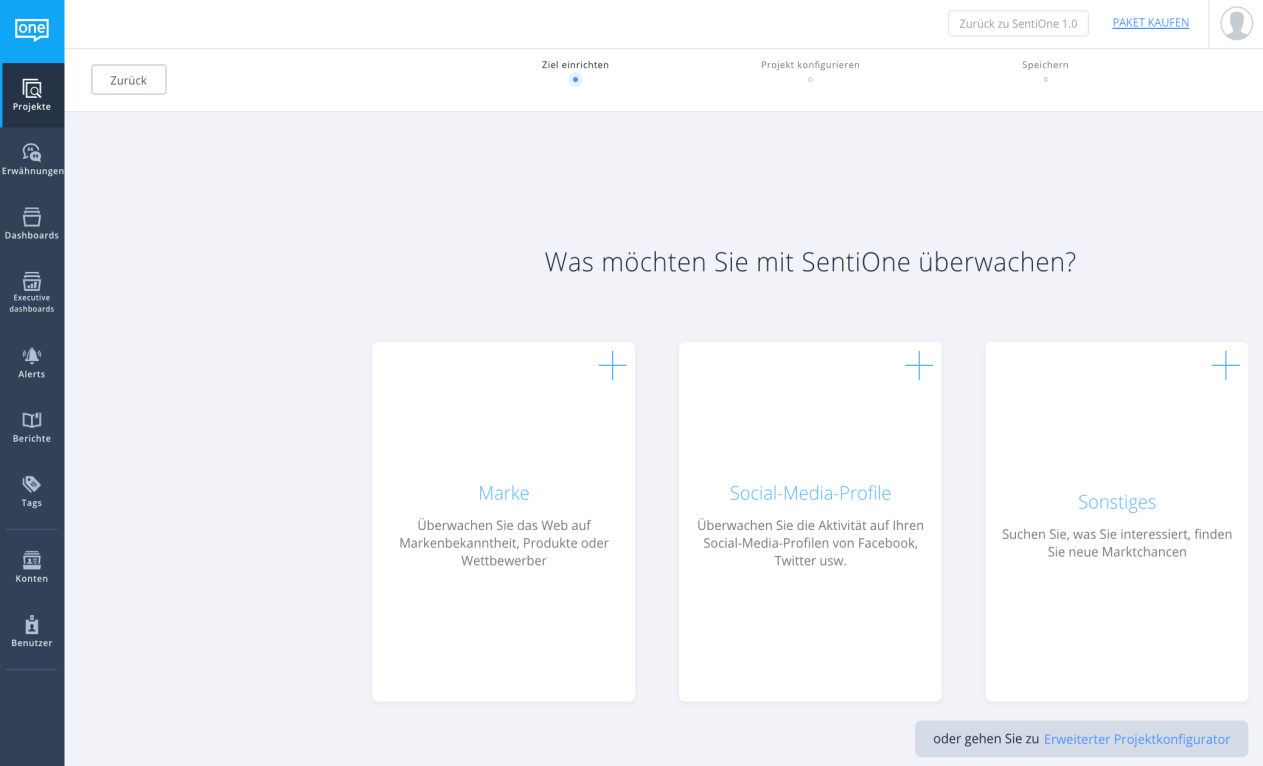 Jeden Tag haben unsere Entwickler hart daran gearbeitet, SentiOne noch besser und vor allem unser User Interface (UI) noch bedienungsfreundlicher zu machen. Der erste Schritt war hierbei die Umbenennung des Ausdrucks Themen in Projekte. Gleichzeitig erfolgte die Bereitstellung eines neuen Projekt-Konfigurationsprozesses.