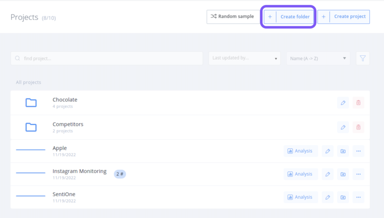 We understand the importance of organization and efficiency in managing projects, so we have introduced the ability to create folders in SentiOne. You can easily create nested folders by clicking the “Create folder” button and selecting a parent folder. This feature allows you to build the perfect hierarchy and organize your projects more effectively.