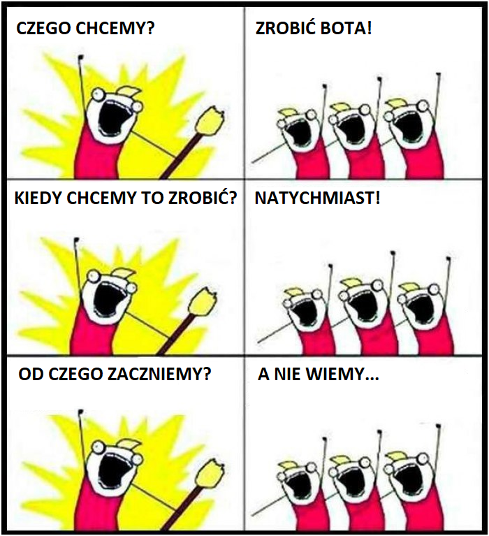W tym artykule postaram się podpowiedzieć Wam, jakich błędów należy unikać przy wdrażaniu pierwszego bota. Mam nadzieję, że dzięki temu będziecie potrafili odpowiedzieć sobie na pytanie “od czego zacząć?”, a tym samym uda Wam się sprawnie wdrożyć bota spełniającego potrzeby biznesowe Waszej firmy.