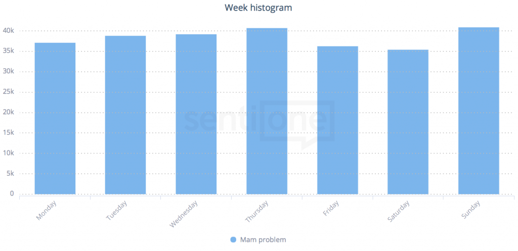 Kiedy dopytują internauci? Monitoring internetu pozwala na optymalizację pracy działu obsługi klienta. O ile temat „mam problem” jest dużym uogólnieniem, to wystarczy w konfiguracji projektu dodać hasło kluczowe – nazwę naszej marki, aby wiedzieć, które dni są najaktywniejsze.