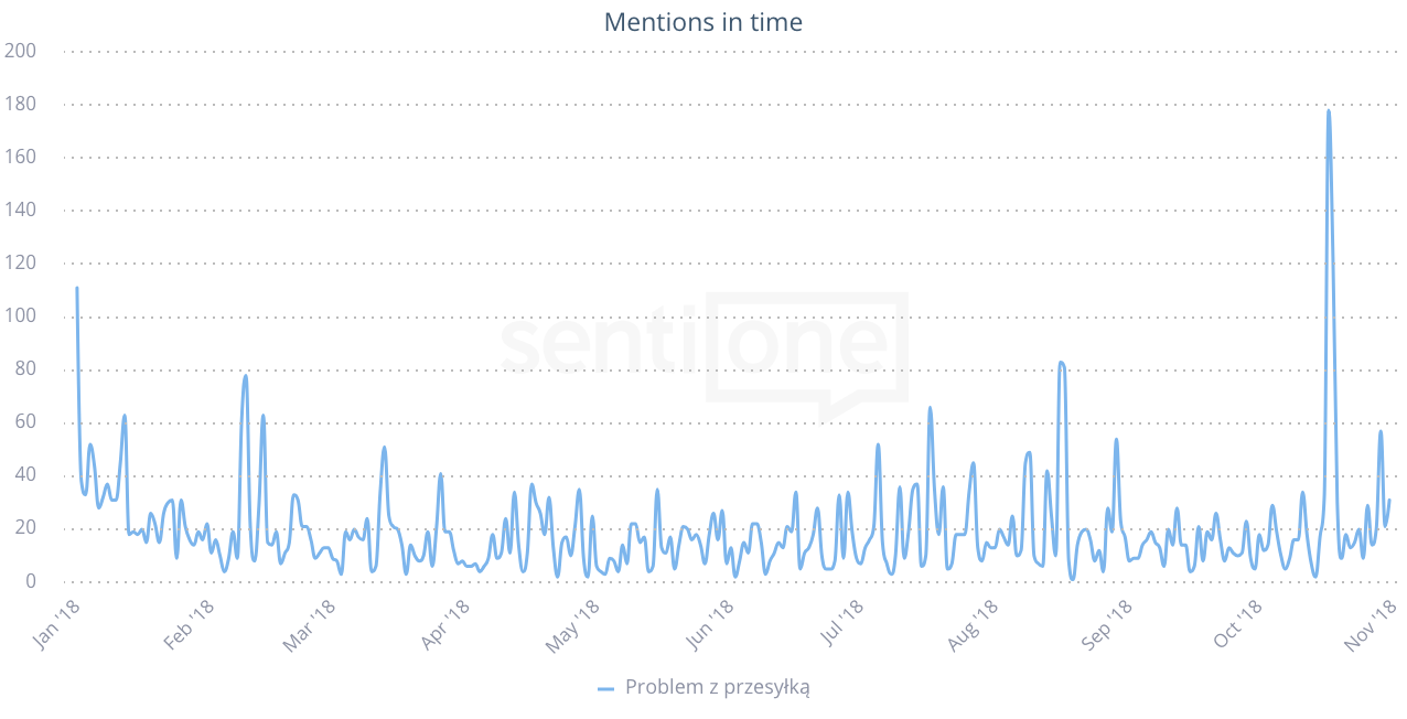 Przy użyciu monitoringu internetu – takiego jak SentiOne, marki mają możliwość analizowania potencjalnie krytycznych sytuacji w świecie online – a takie zdarzają się codziennie. Zniszczone paczki, przesyłki zagubione w drodze do adresata, czy pomyłkowe dostarczenie naszego wymarzonego prezentu do innego właściciela, to dla nich chleb powszedni. Bezpośrednim następstwem wymienionych przeze mnie powyżej sytuacji, jest niestety negatywna reakcja – bardzo często publikowana w Internecie, na przykład na profilach społecznościowych przewoźników. Zazwyczaj w takiej sytuacji rykoszetem odbija się to na marce, producencie zakupionych przedmiotów w formie treści w social mediach, przy oznaczaniu zarówno producenta jak i firmy transportowej często odpowiedzialnej za powstały problem. Znakomita większość firm w branży dba jednak o swój wizerunek i jakość usług, działając według określonych w swojej polityce zasad i bardzo szybko wspierając konsumentów w rozwiązaniu problemu – bywa, że nawet najdrobniejsza sprawa może poruszyć tłumy i sprawić, że wszechobecna niechęć wylewa się na wszystkie strony sporu.
