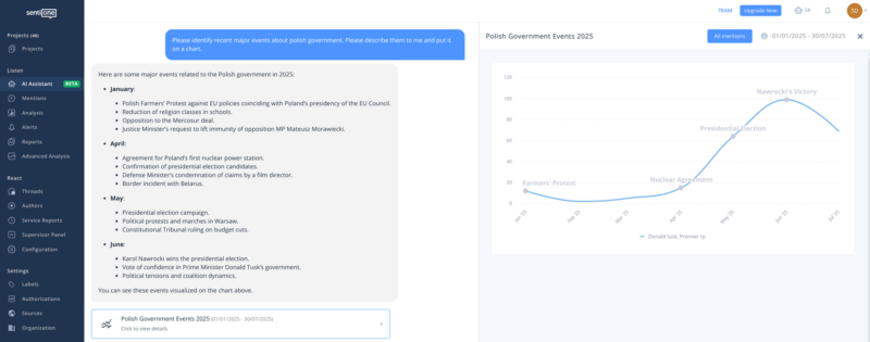 By putting intelligent insights at your fingertips, SentiOne’s AI Assistant empowers every user – regardless of technical background – to harness the full potential of real-time online data.
