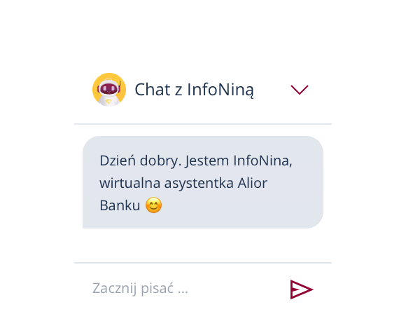 Szczególnie ważnym krokiem w rozwoju bota było wdrożenie procesów transakcyjnych. Dzięki uruchomieniu obsługi transakcyjnej bot po weryfikacji tożsamości klienta może wykonać wybrane dyspozycje związane z posiadanymi przez niego produktami (np. podać saldo rachunku lub udzielić informacji o szczegółach posiadanego kredytu). Bank cały czas pracuje nad uruchomieniem kolejnych procesów, co w niedalekiej przyszłości jeszcze bardziej zwiększy zakres obsługi oferowanej przez bota. Warto nadmienić, że od czerwca 2023 roku InfoNina jest również dostępna w formie chatbota na stronie internetowej Alior Banku. W nowym kanale obsługi wirtualna asystentka udziela podstawowych informacji związanych z obsługą produktów bankowych, prezentuje także ofertę kredytów i depozytów. Zakres obsługi chatbota jest stale rozszerzany.